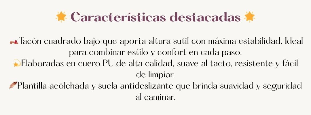 Diseño moderno con mini tacón, plantilla acolchada y acabado en cuero PU premium, perfectas para cualquier ocasión.