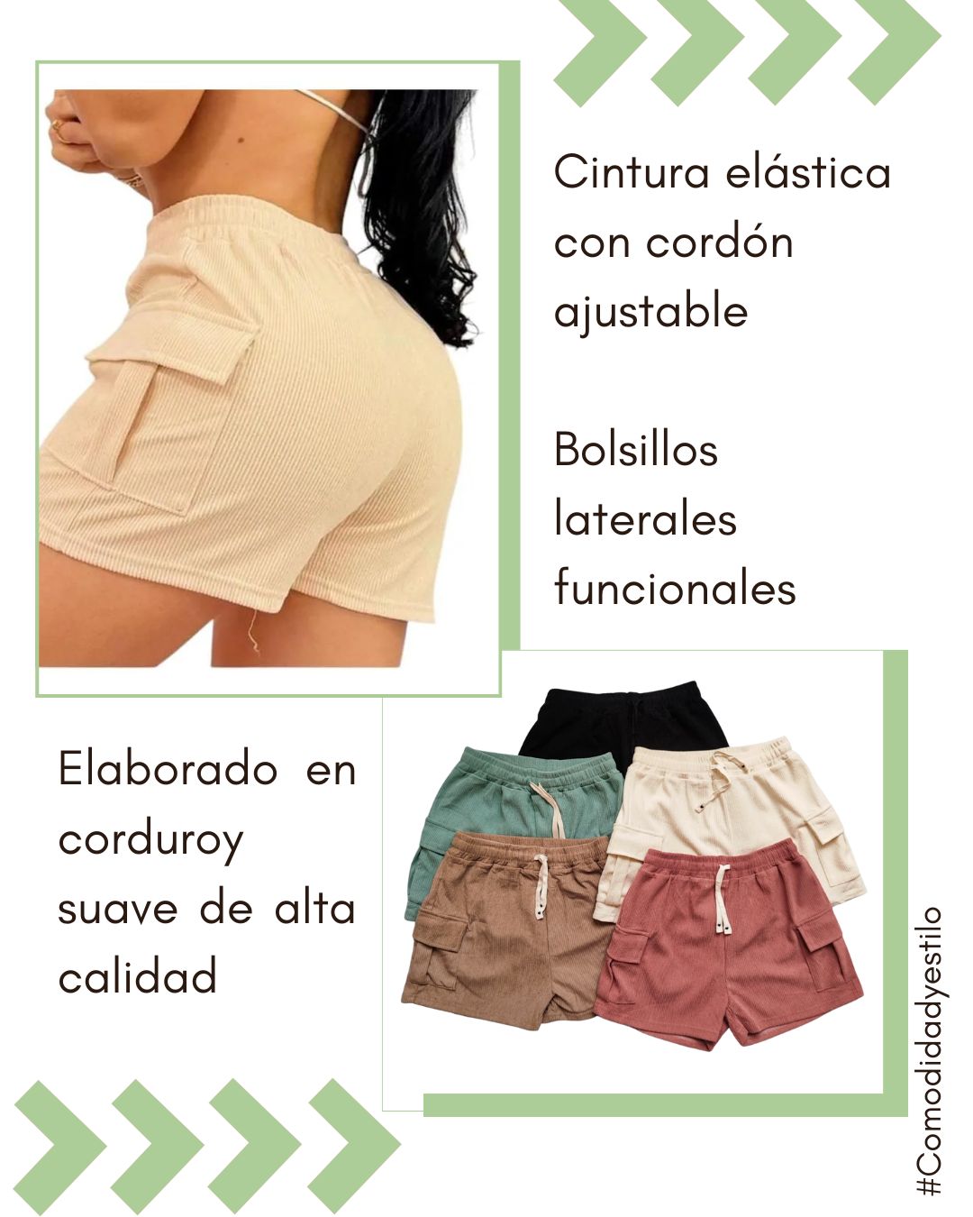 Descubre nuestros shorts clásicos en pana premium: un diseño femenino, moderno y súper cómodo, perfecto para tu día a día.